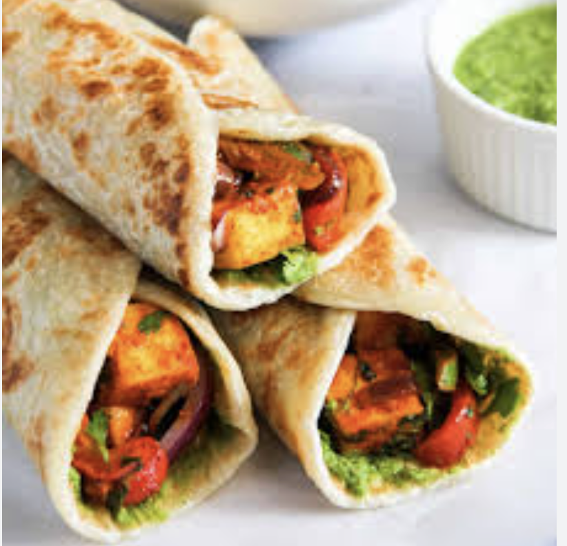 ½ cup mixed vegetables, 50g paneer, 1 tsp tandoori masala, 1 whole wheat paratha, 2 tbsp yogurt