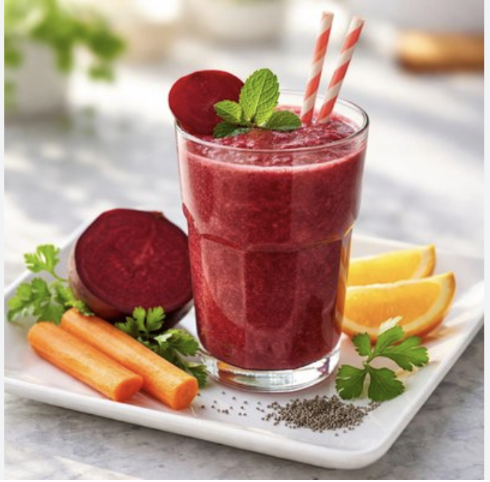 2 carrots, 1 beetroot, 1 apple, 10 almonds, ½ cup Greek yogurt, pinch of cumin, salt